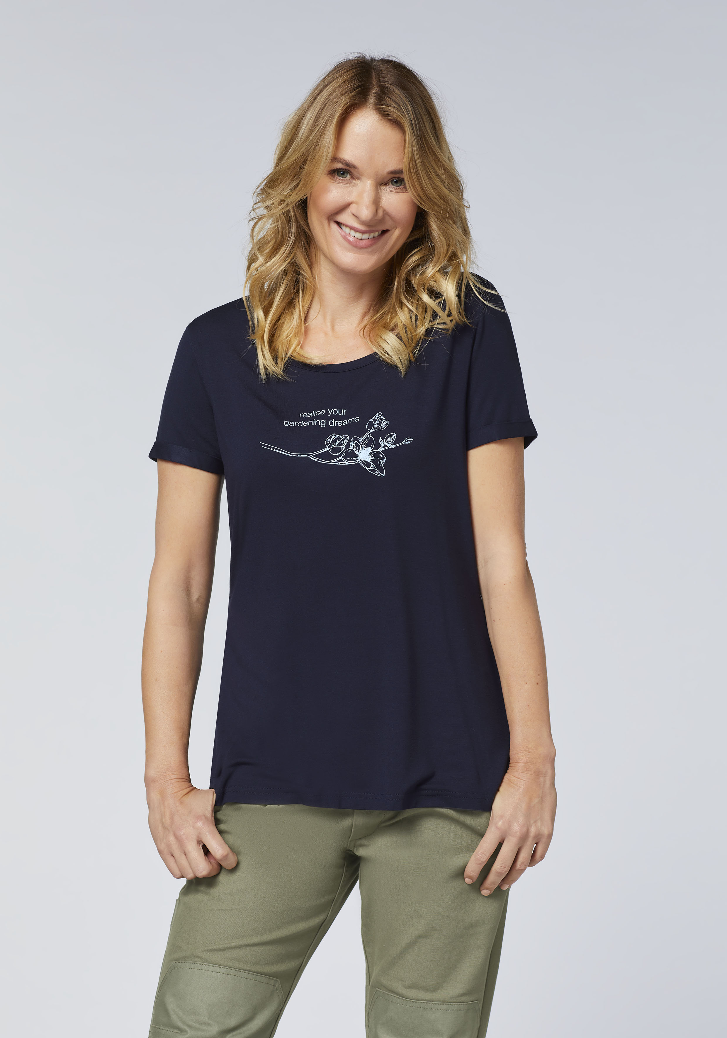 Ausgestelltes Jersey-Shirt im floralen Gardening-Design