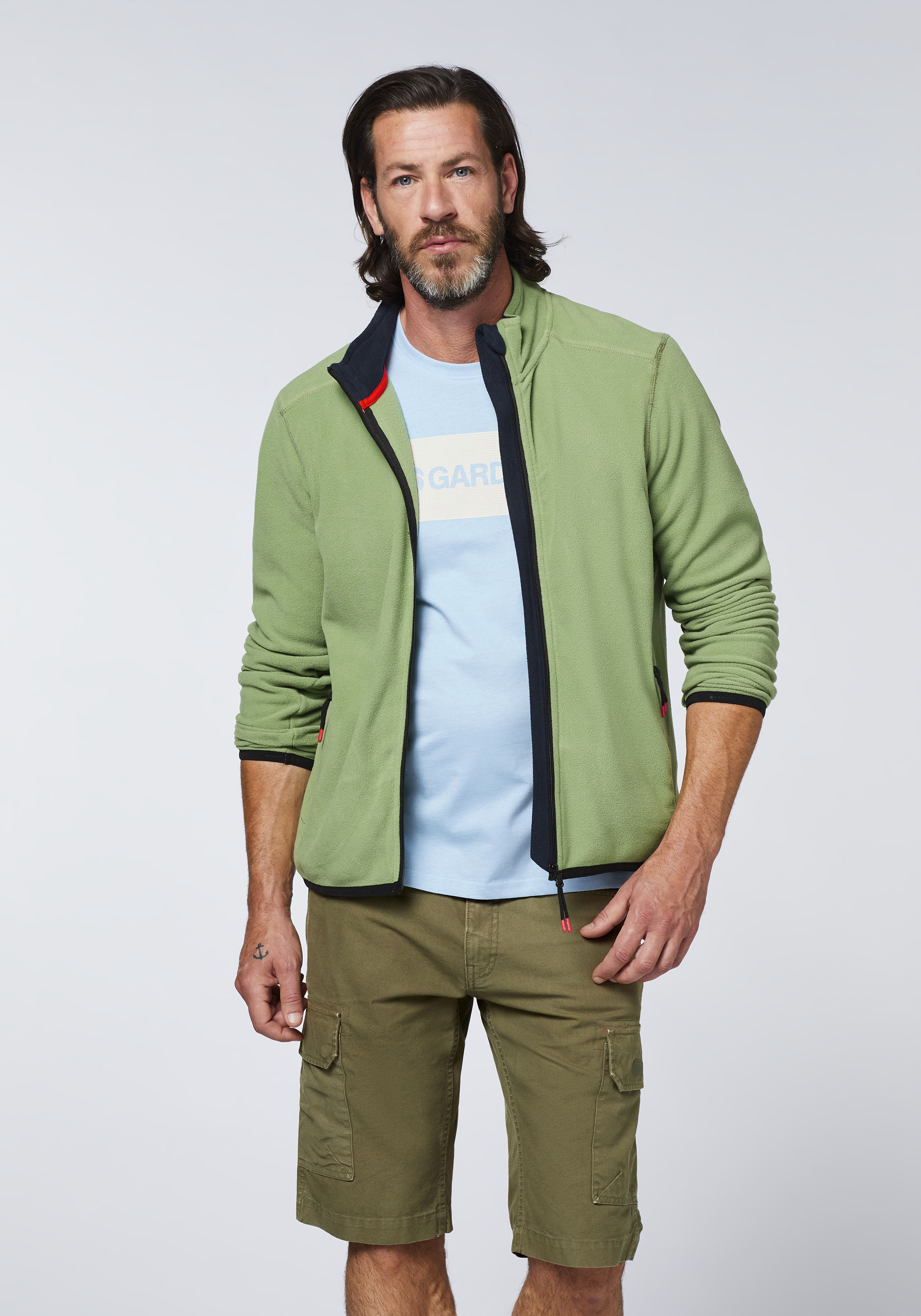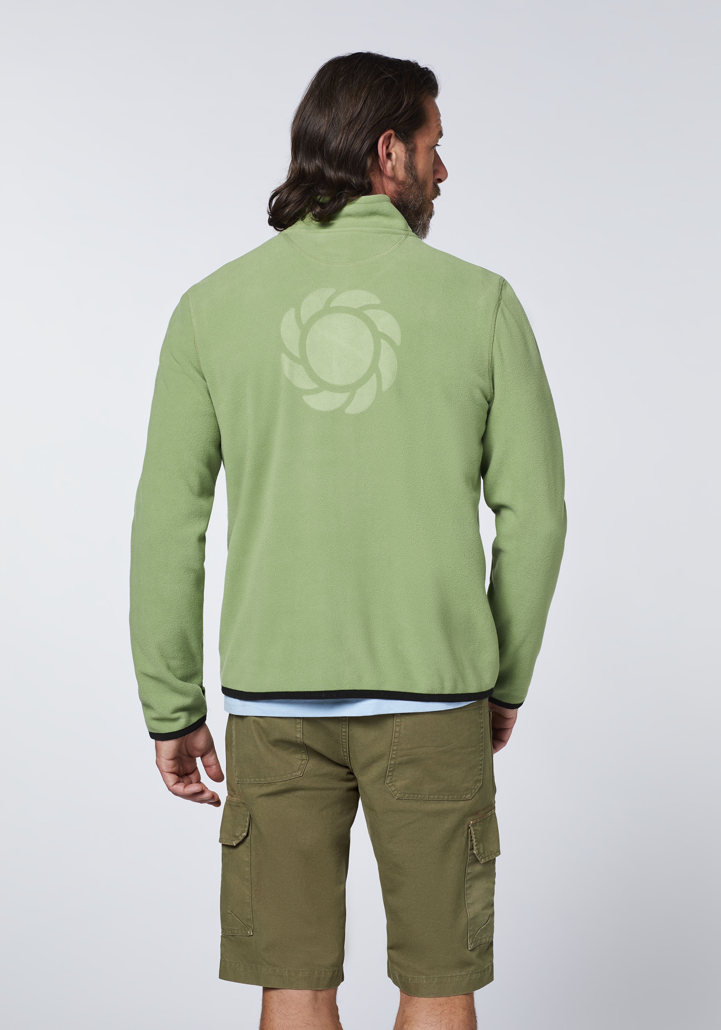 Fleece-Jacke mit Label-Symbol in Ton-in-Ton Optik