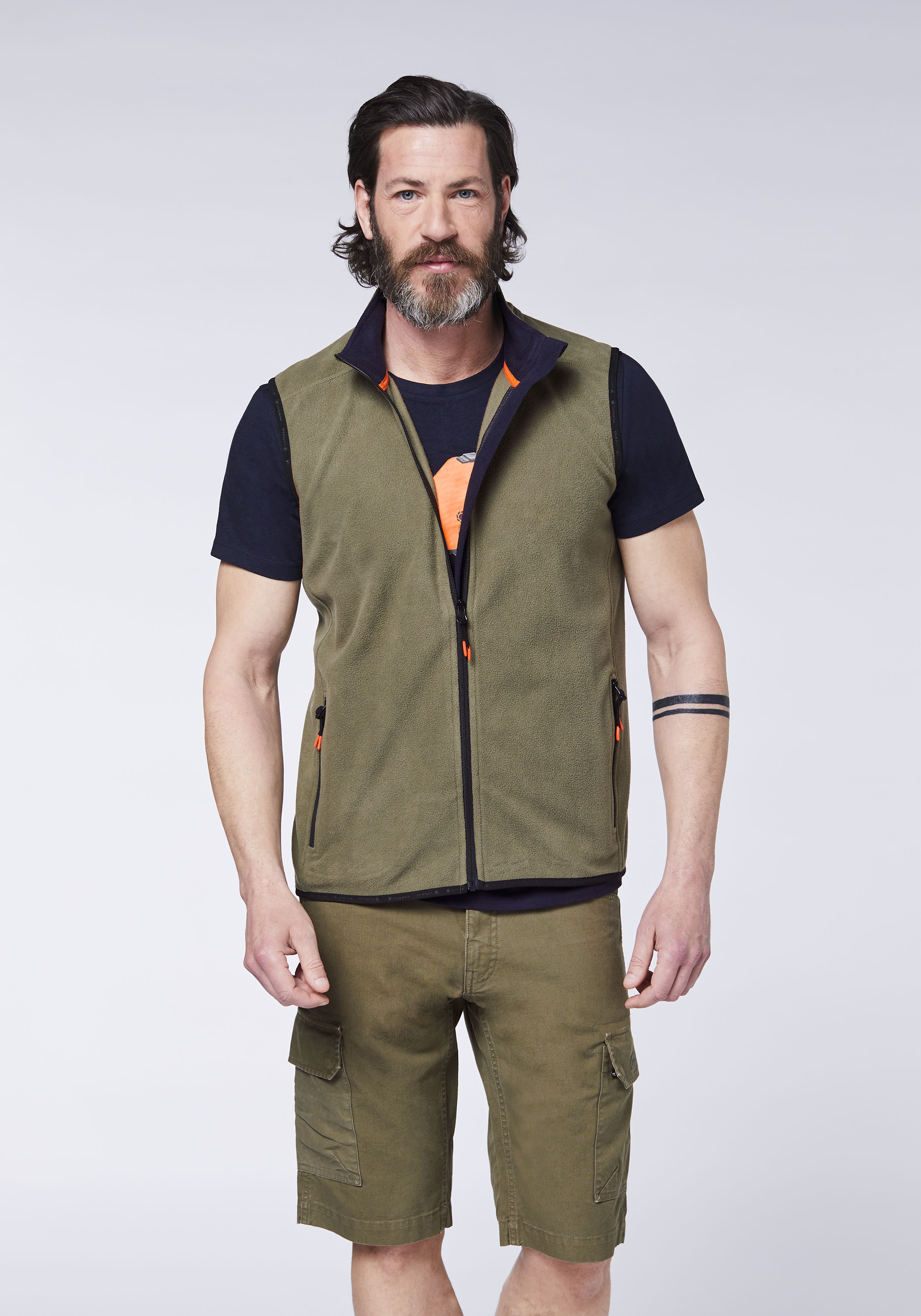 Fleece-Weste mit Logo-Motiv in Ton-in-Ton Optik